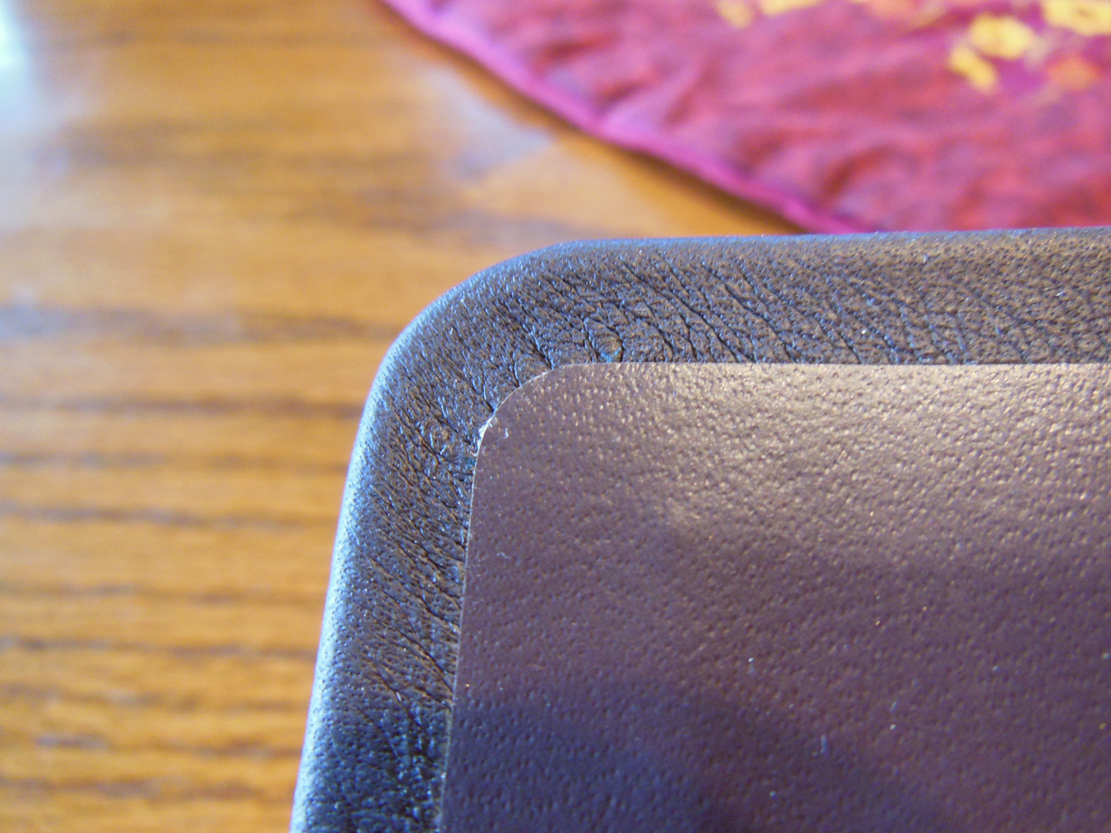 The Bible I received was black smooth textured bonded leather over the spine and a saddle brown colored more textured bonded leather over the rest of the cover. The cover is perimeter stitched in white thread. It is an attractive Bible.