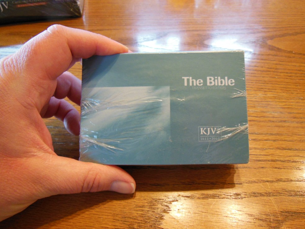 In these pictures you can see the Wide Margin on the bottom of a stack of Cambridge Bibles. On top is the NASB Clarion, then the KJV Concord, and finally the Wide Margin.