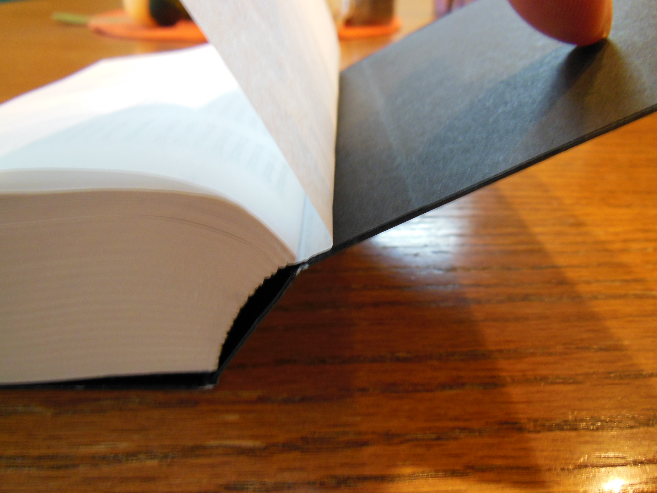 The cover on this edition is crafted from black goatskin leather. It has a natural grain that is soft to the touch and comfortable to hold. It is not slick and shiny like some less expensive covers made from pigskin leather.