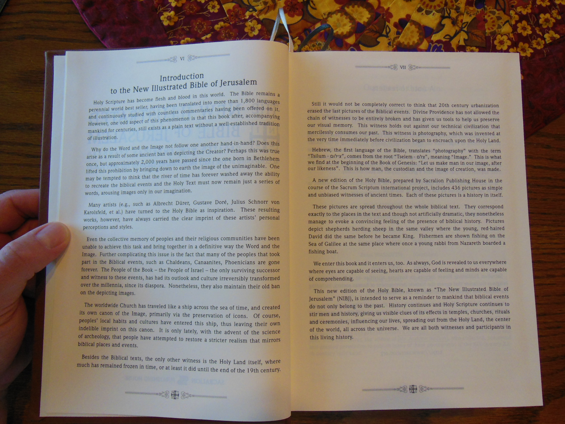 The text block is smyth-sewn. This means that instead of what is called a, “perfect binding” which is, stacking the papers together, cutting the ends, and then gluing them together at the spine. They stack up pamphlets called signatures. These are stacked up and sewn to signature tapes. Then, they are sewn to each other as well. The spine is sometimes glued to reinforce it. A smyth-sewn binding holds together much longer because the pages are sewn together, and sewn to cords or tapes in the spine. Glued bindings often lose pages from the front and back of the book, as the glue loses its flexibility, and hardens. A sewn binding opens better, and it stays open, once it is opened.