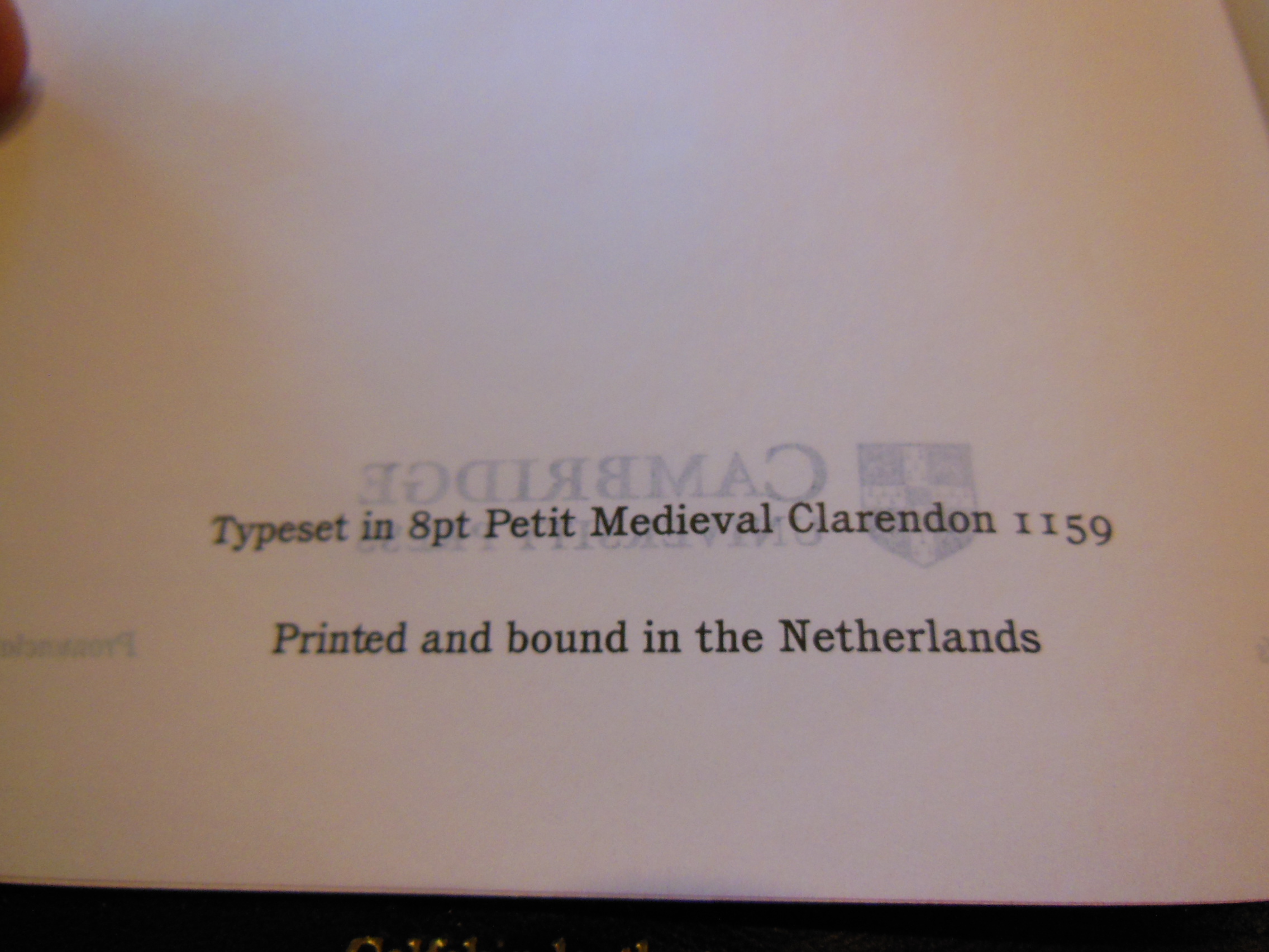 Contrary to popular belief, this edition of the Classic Reference Bible is not printed by Cambridge. Cambridge oversees the printing. It is also a typesetting of the Cambridge Concord that has been shrunk, and maintains the pagination. It is printed and bound by Printcorp in Minsk, Belarus for TBS. These distinctions can change depending on the production run at the time. It is acceptable to ask. TBS is always willing to answer specific questions. They are just an e-mail away.