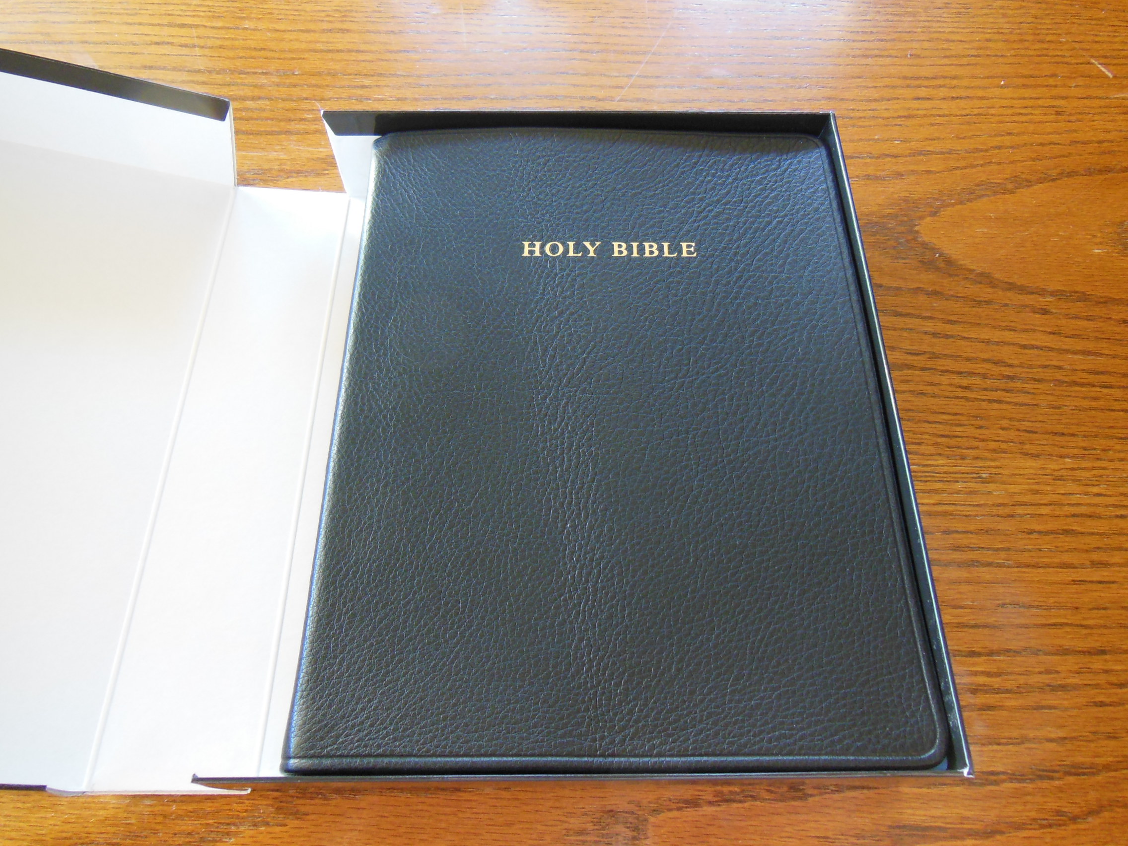 The Bible itself was inside a sturdy cardboard slipcase, that should be retained for storage.