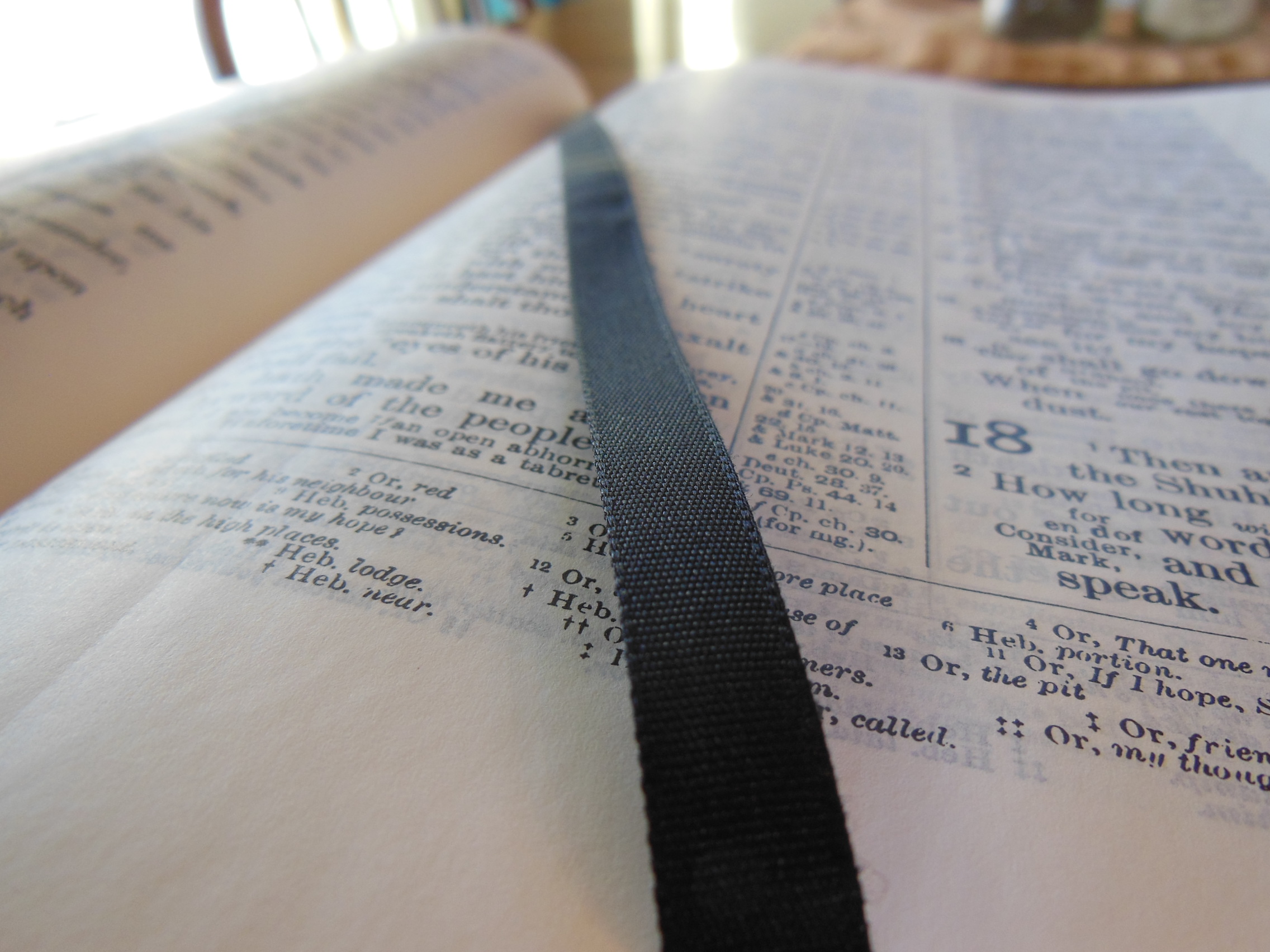 There are two black ribbon markers to help you keep your place. This is very helpful for people who read out of the Old Testament and New Testament on a daily basis.