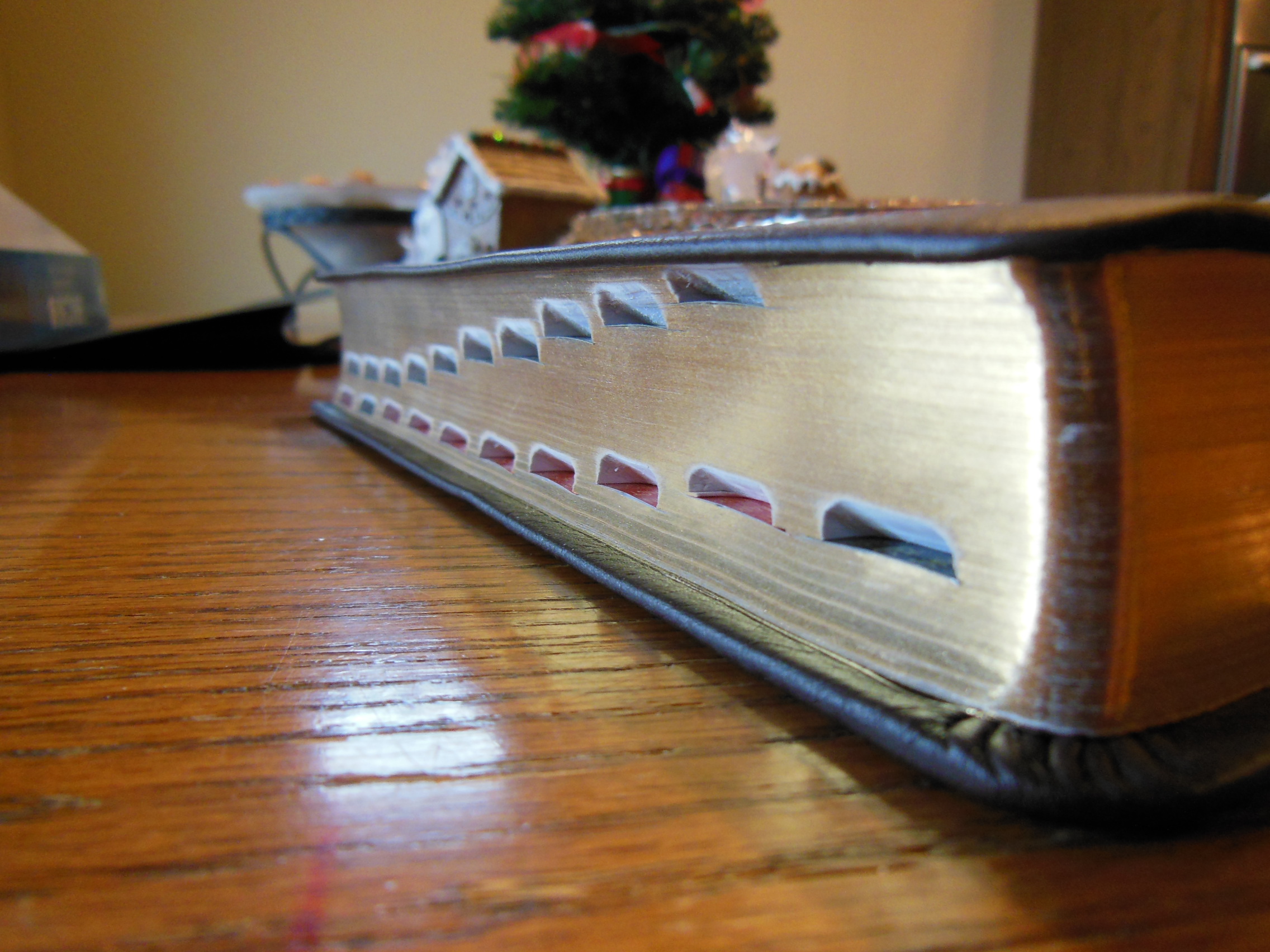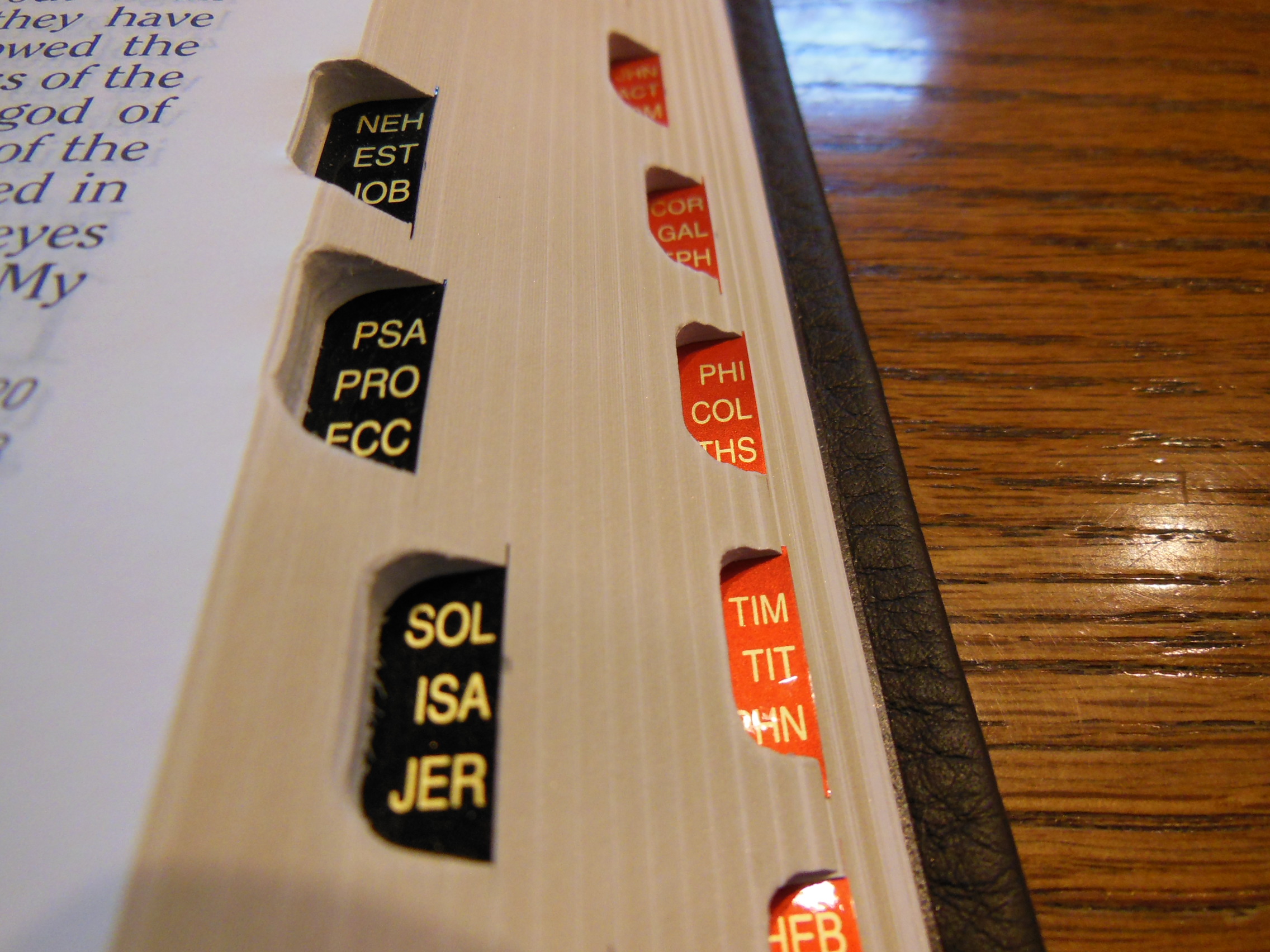 The thumb indexes are pretty typical of other thumb indexes. Some people love them, I don’t really use them. This Bible is printed and bound in Korea. They seem to be the new middle of the pack printers as far as quality and price go. Most of the Korean made Bibles are a good value. They aren’t as well made as the Jongbloed Bibles, and they aren’t near as expensive either. They far exceed the quality of the Chinese made Bibles and are generally about a third to twice the cost. In my opinion, it is worth it to spend the extra money. The Chinese quality is so hit or miss, it is ridiculous.