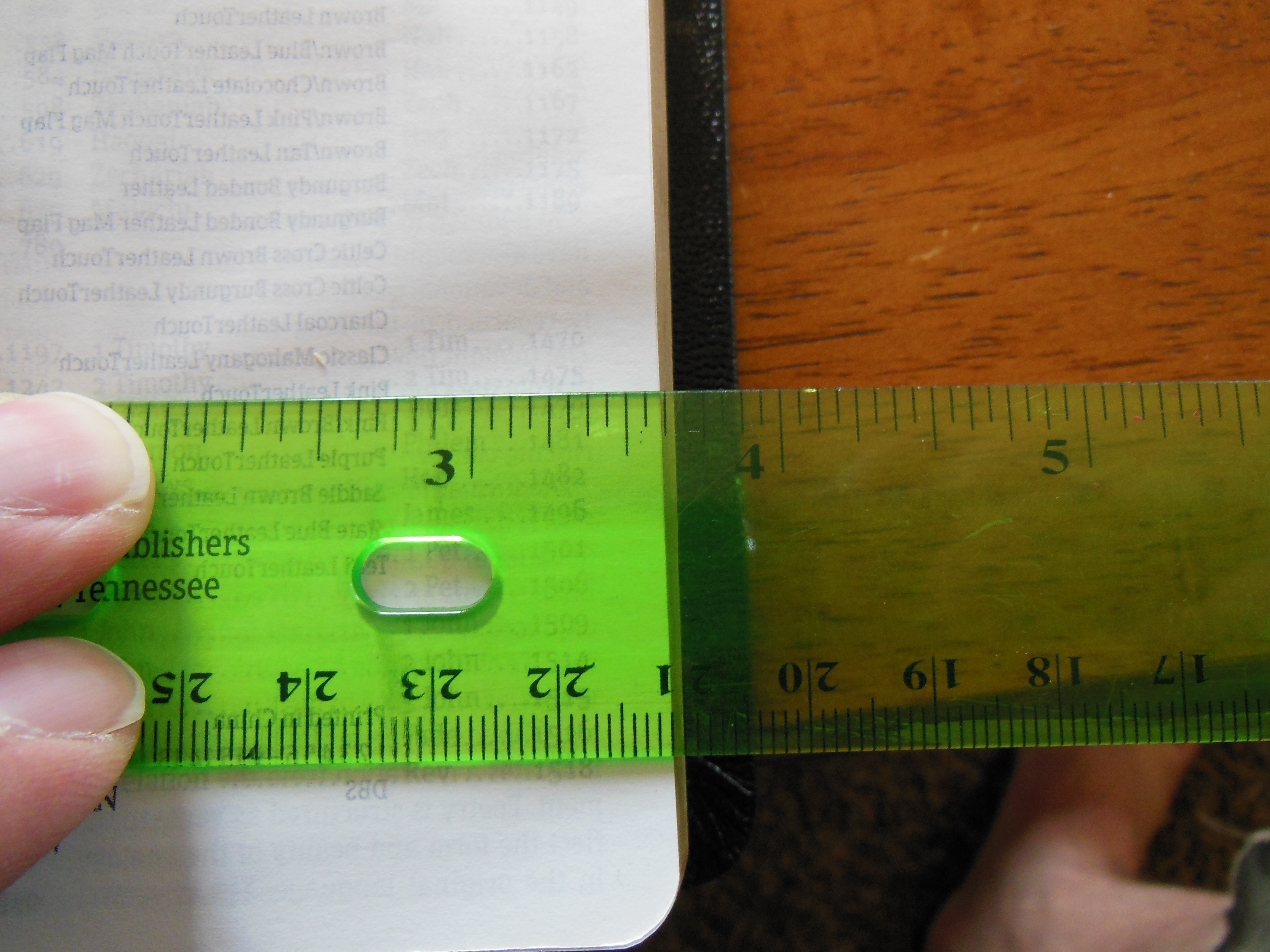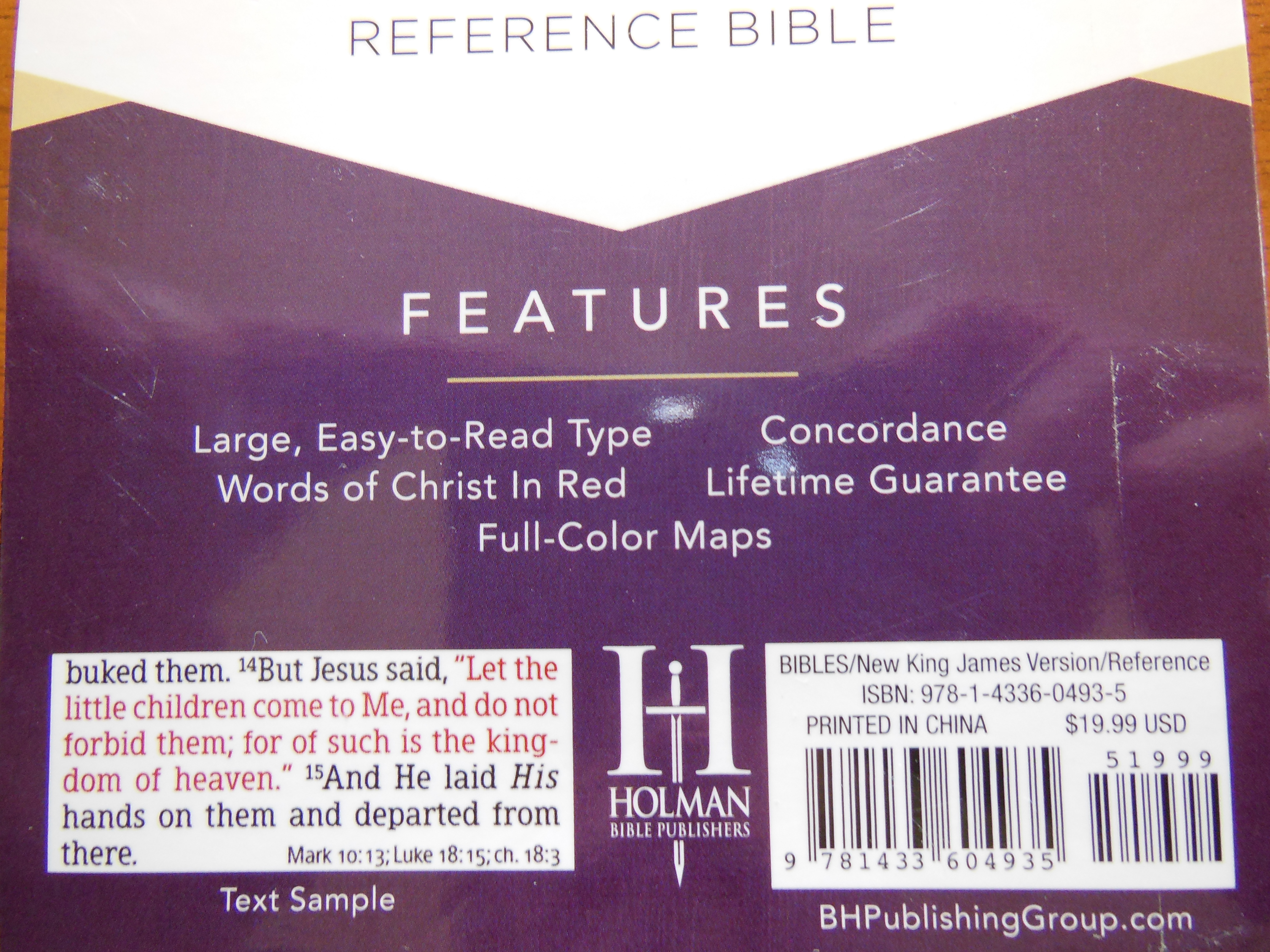 The sewn binding will help ensure years of use. The Giant Print Bible maintains typical 6 ½” x 9 ¼” for the width and height, but is a tad bit thicker at 1 ¾” It is a little heavier than your typical reference Bible, but not by much. Even with the slight size difference it is still pretty easy to hold and read.