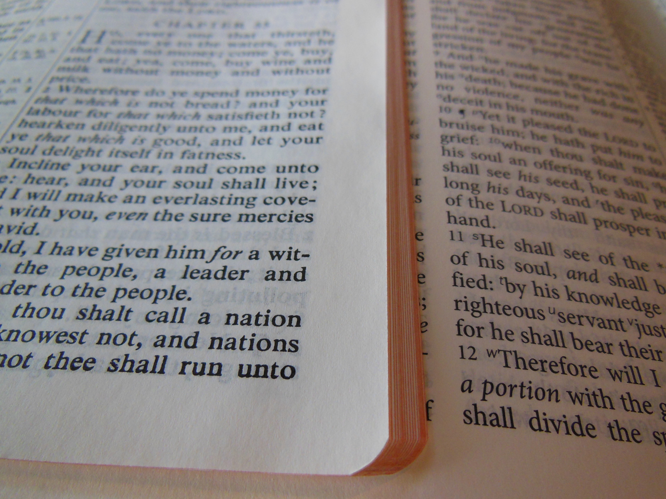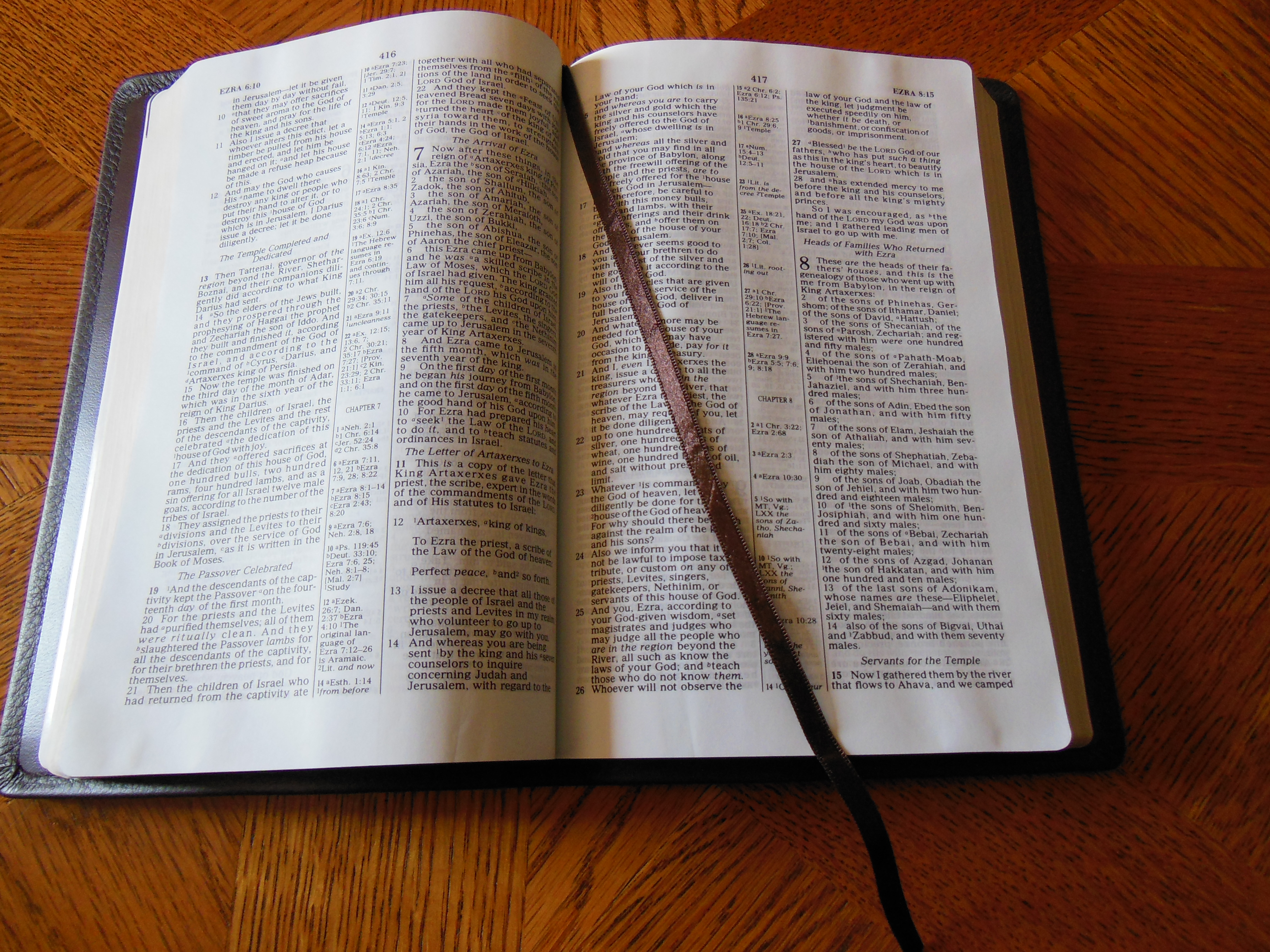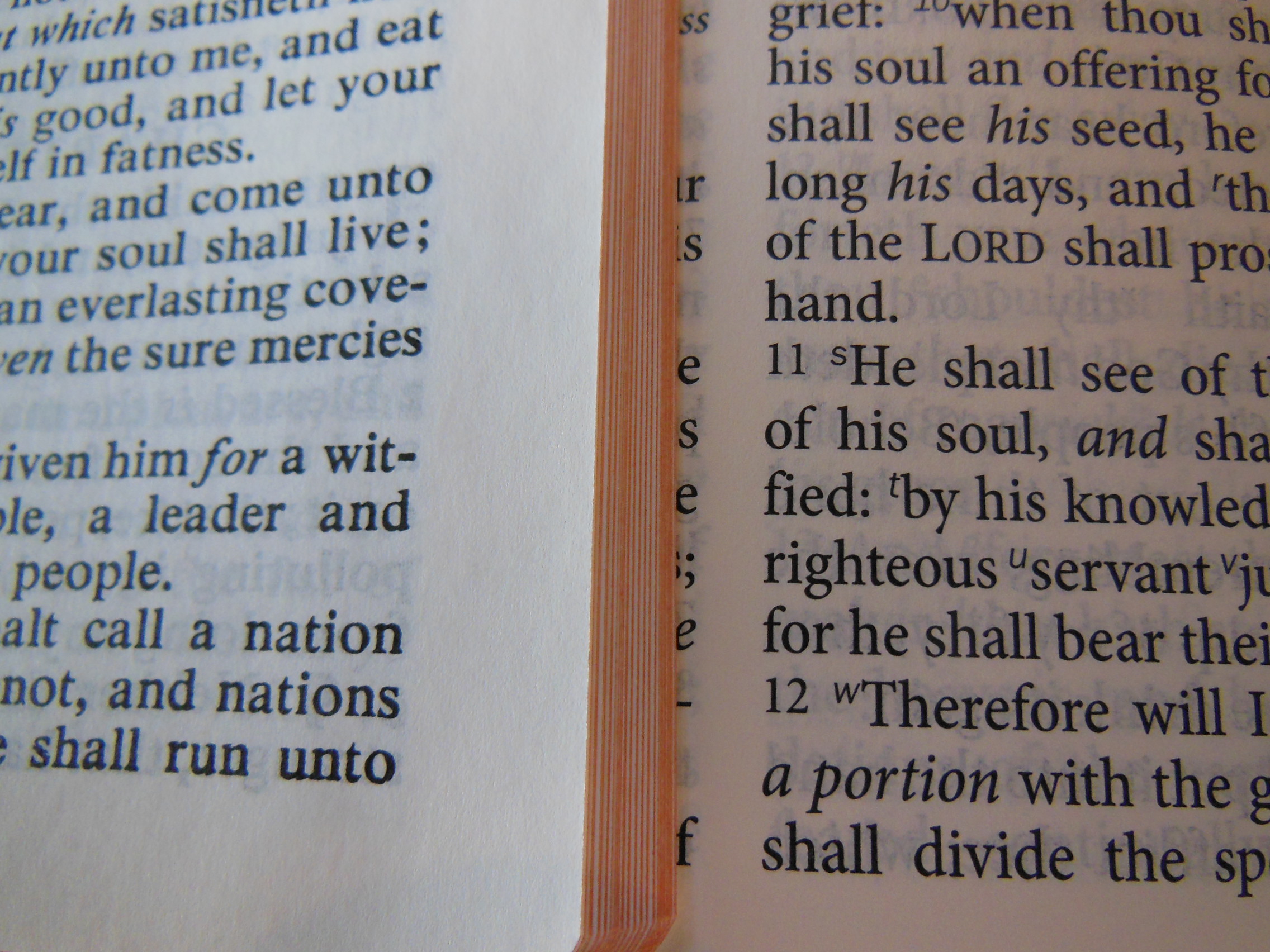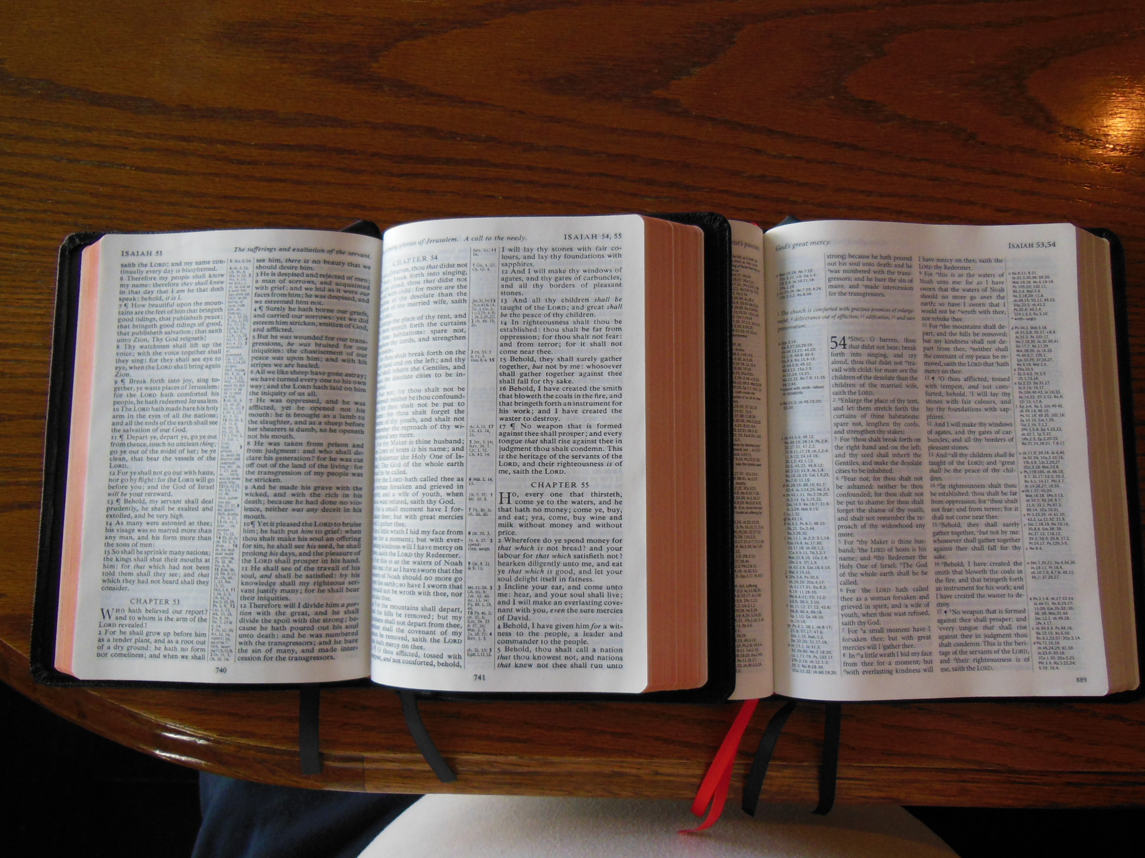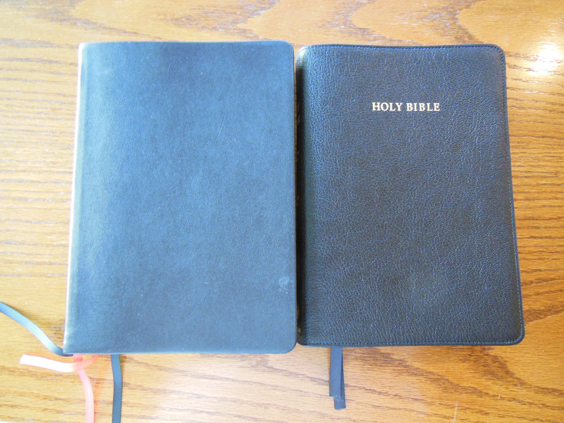 Once the plastic was discarded, I was pleasantly greeted by the familiar smell of a nice leather cover. There are numerous Bibles out there that say they have a genuine leather cover, but they look like and feel like bonded leather. They have a fake grain pressed into them and their covers look shiny. Not this big boy, the cover on this has nice texture and tactile feel to it. Honestly, for the small price of this Bible I’d expect a cheaper feeling cover. I thought the burgundy color was just right as well, not brazen, but still different than the venerable black.