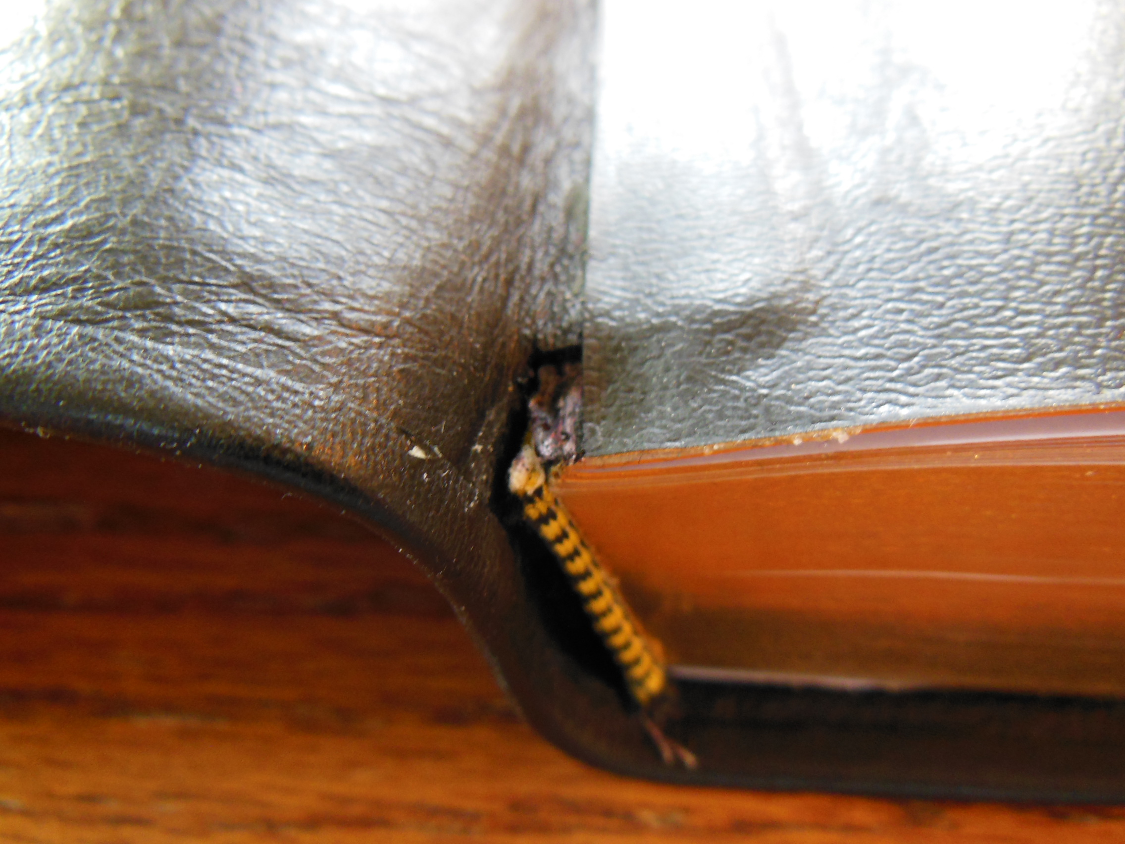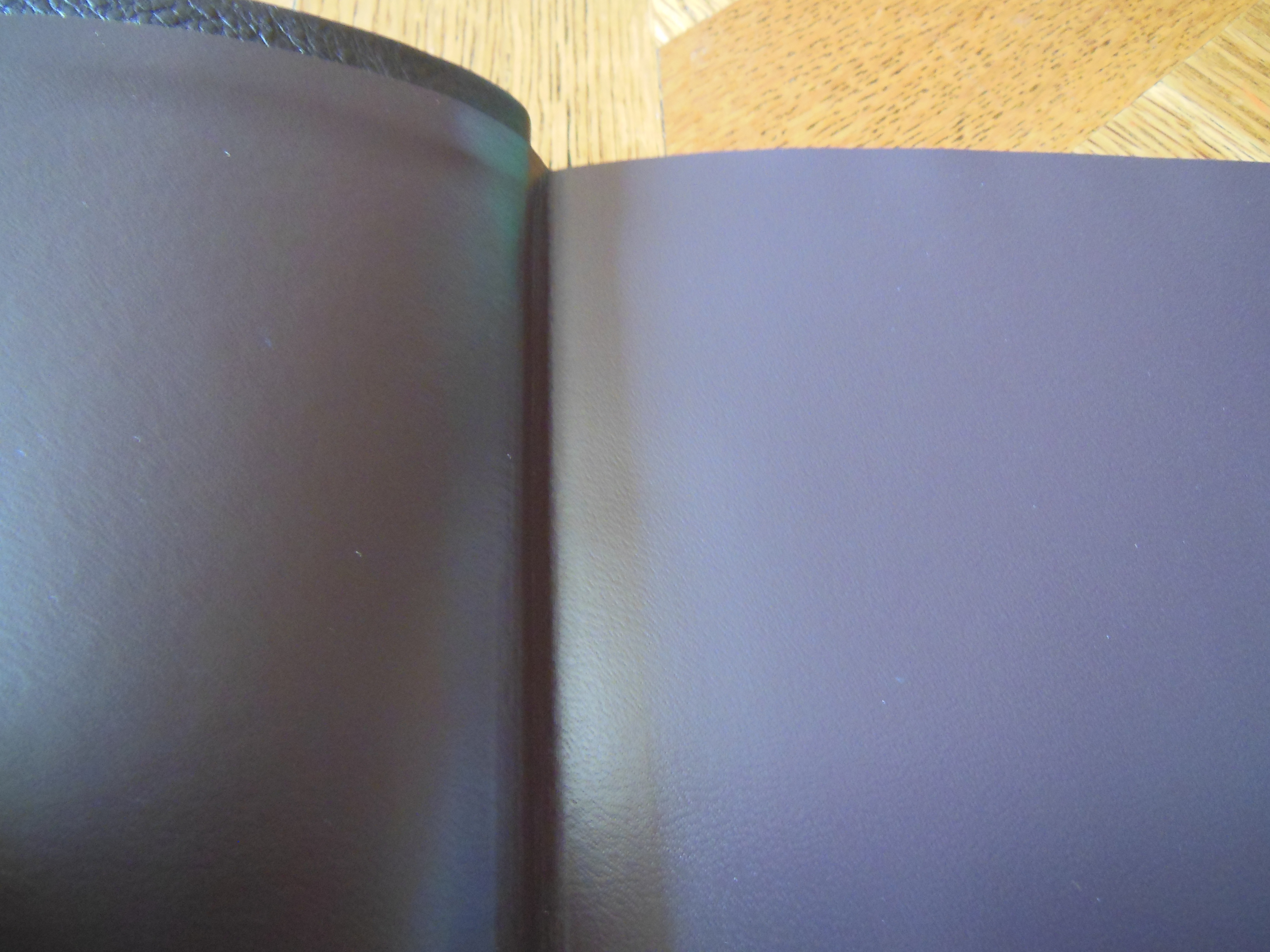 The inside cover is lined with a vinyl liner that is color matched to the cover. It is glued down over the corners and edges of the cover.