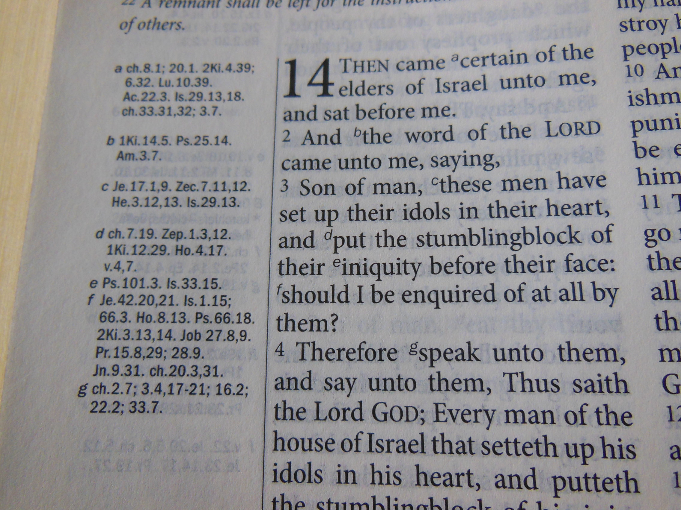 The text is in a double column verse format with references at the end of each paragraph. There are limited references, for a reference Bible. This one has about 13,000 references. I doubt that anyone considering a 14 point font giant print edition is worried about having a ton of references though.