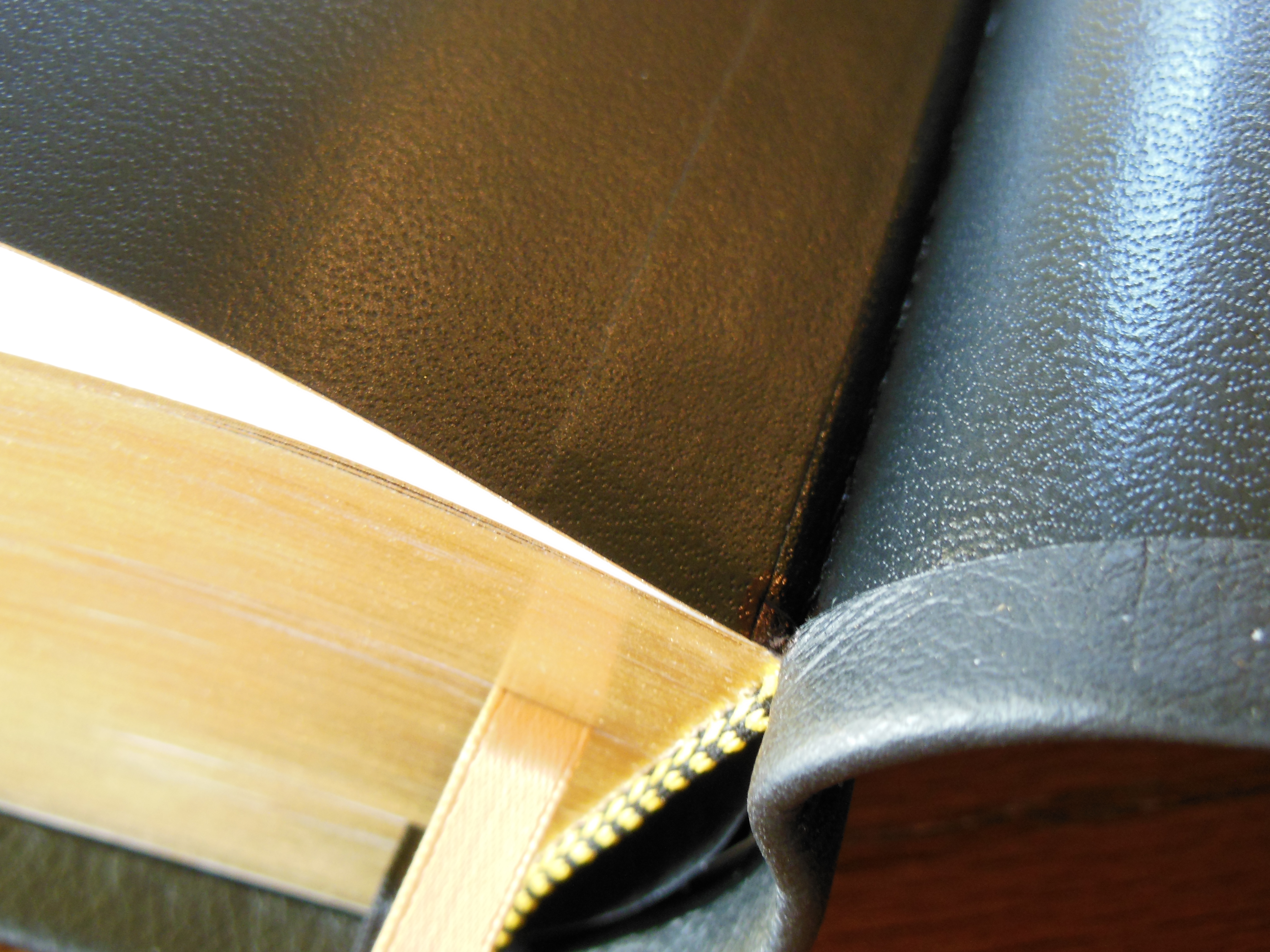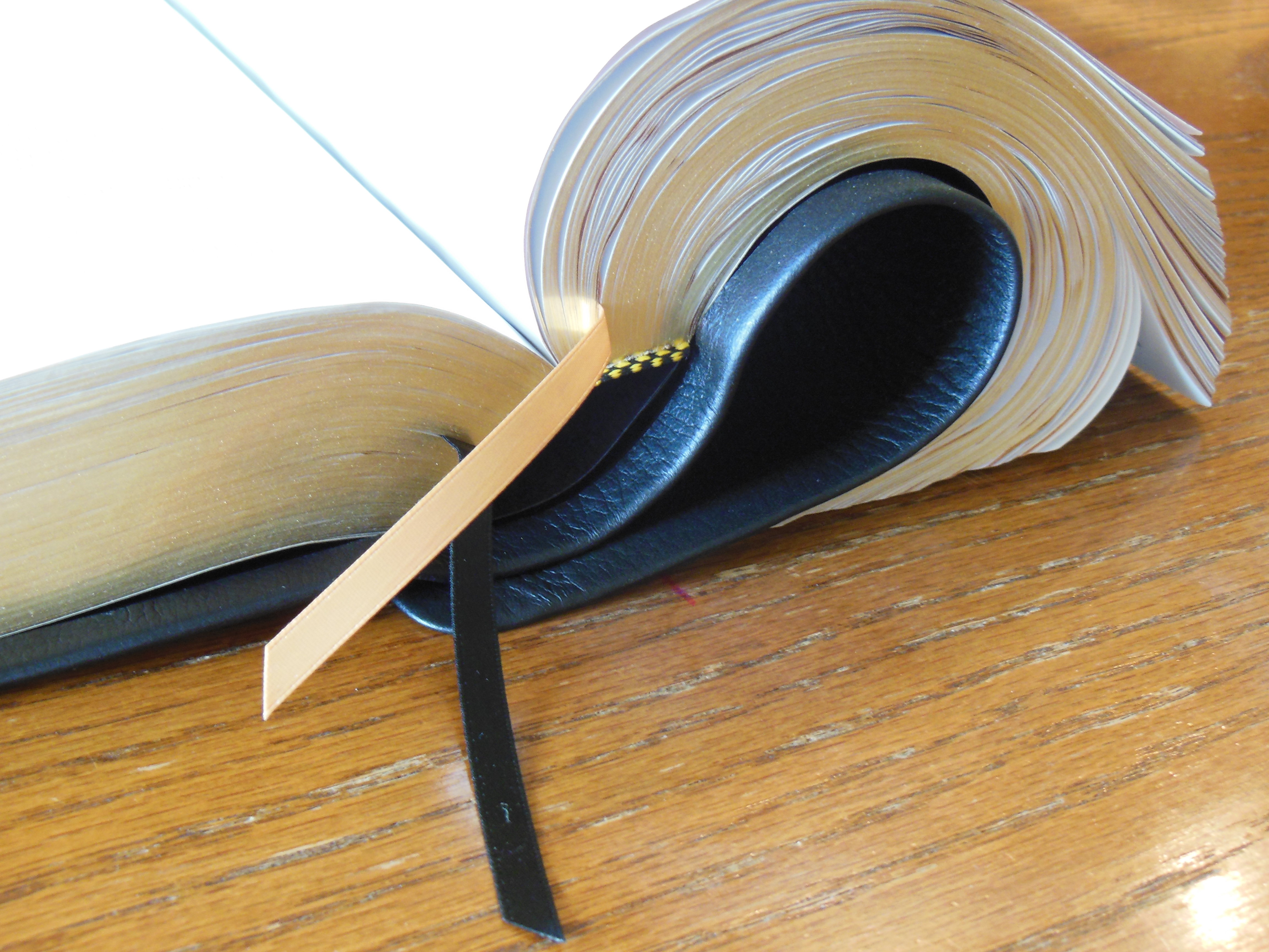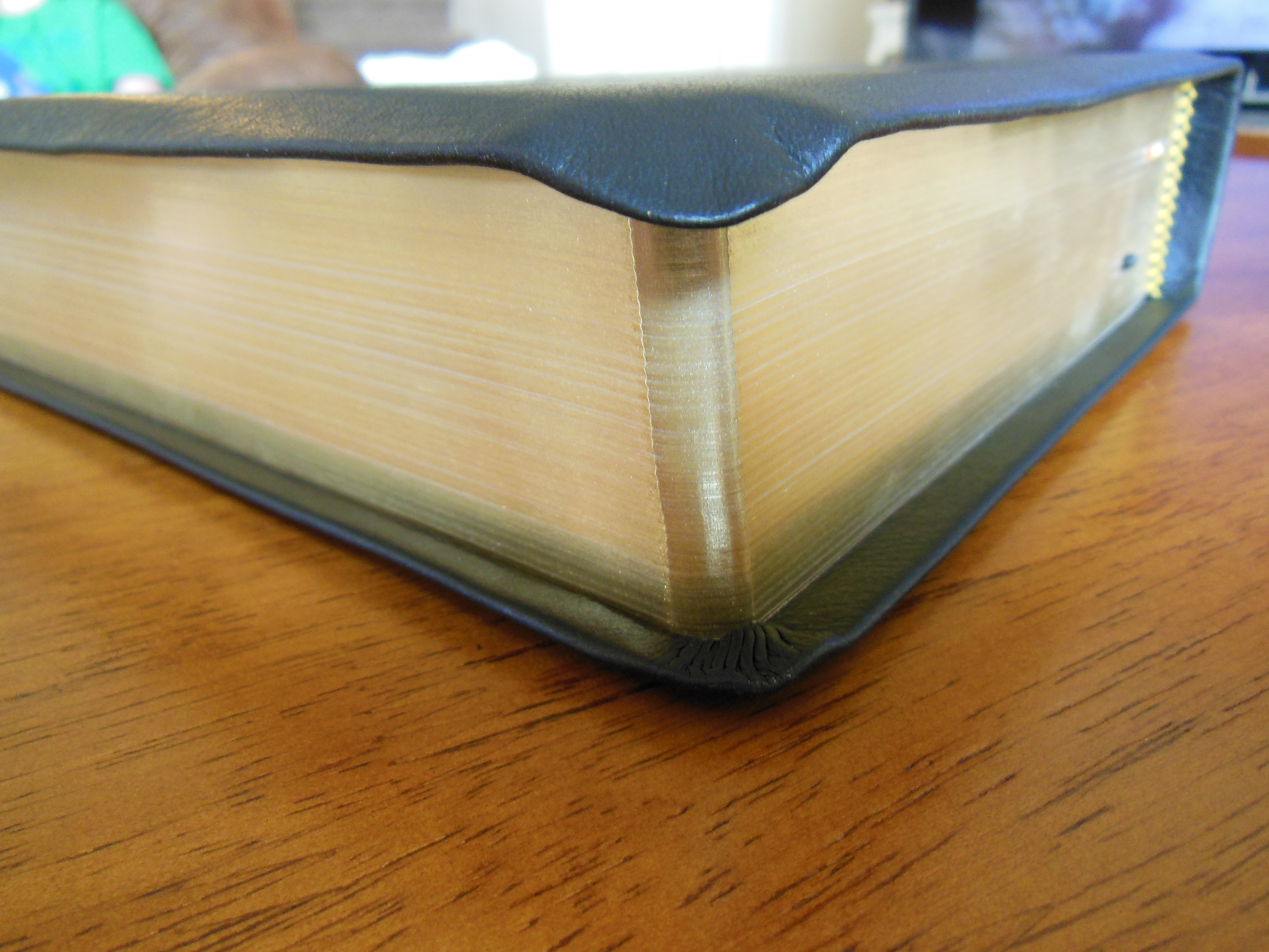 There is one very thin, and unintentional looking ribbon marker. It just seems out of place. Given their exceptional use of overcasting contrasted with this anemic ribbon, I’m at a loss. I’m kind of a stickler for ribbon markers. All Bibles should come with 3 ribbon markers that are wide enough to not bite into the page edges when opening the Bible with them. They should be thick enough to be durable. They should be thin enough to not leave grooves in the pages from when the Bible is closed on them. Finally they should not be folded haphazardly into the Bible from the factory.