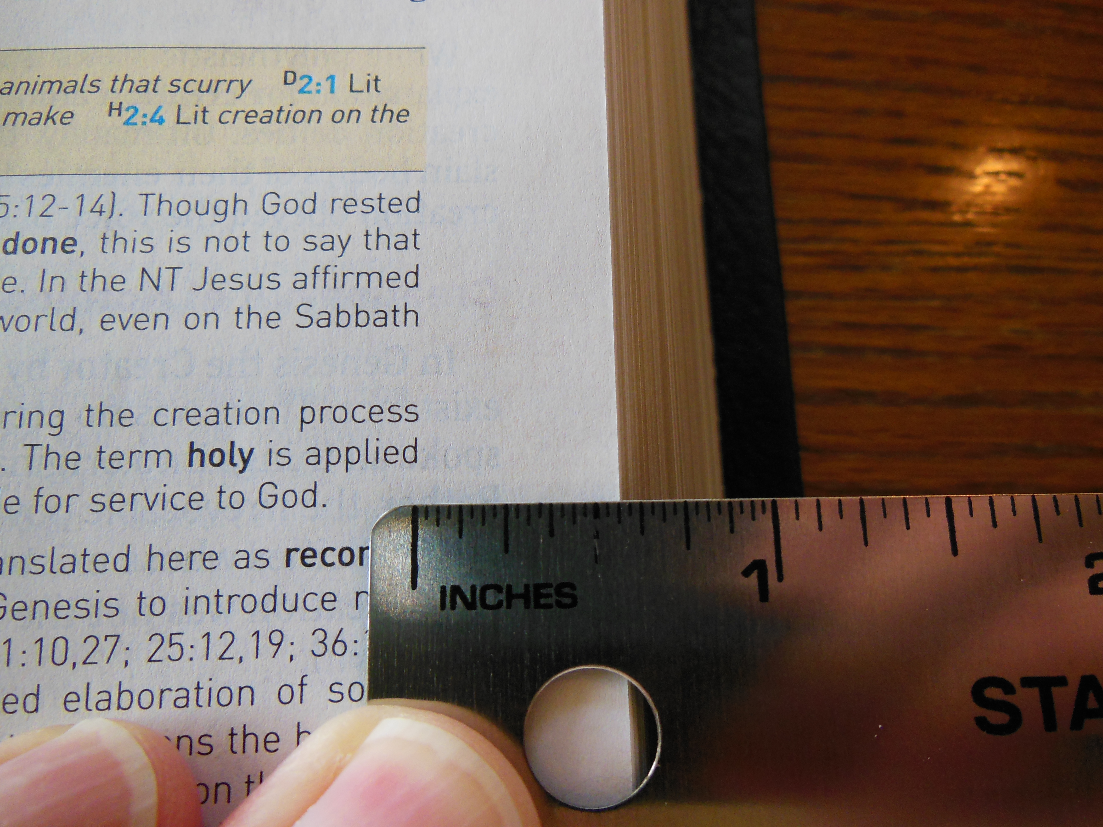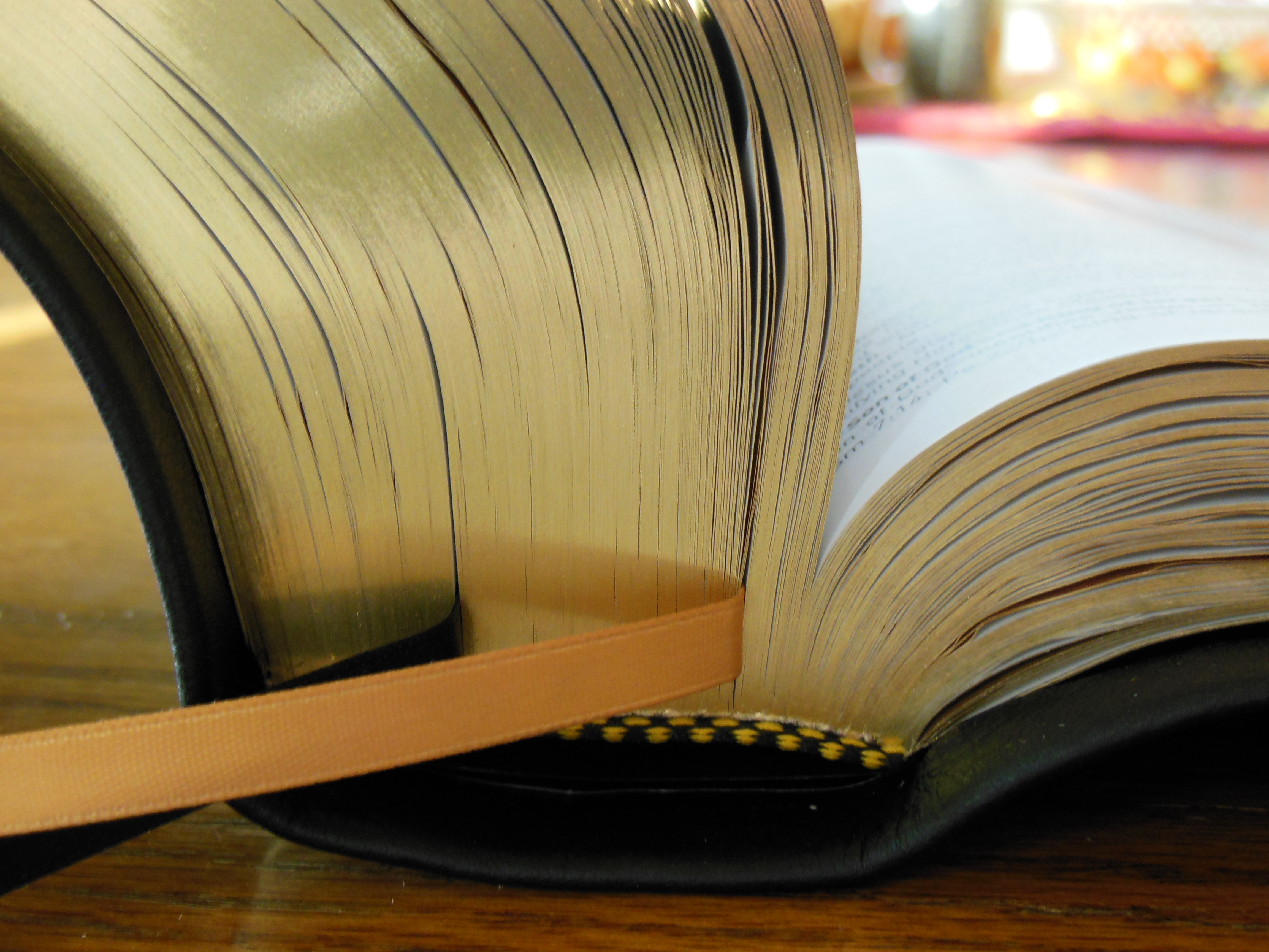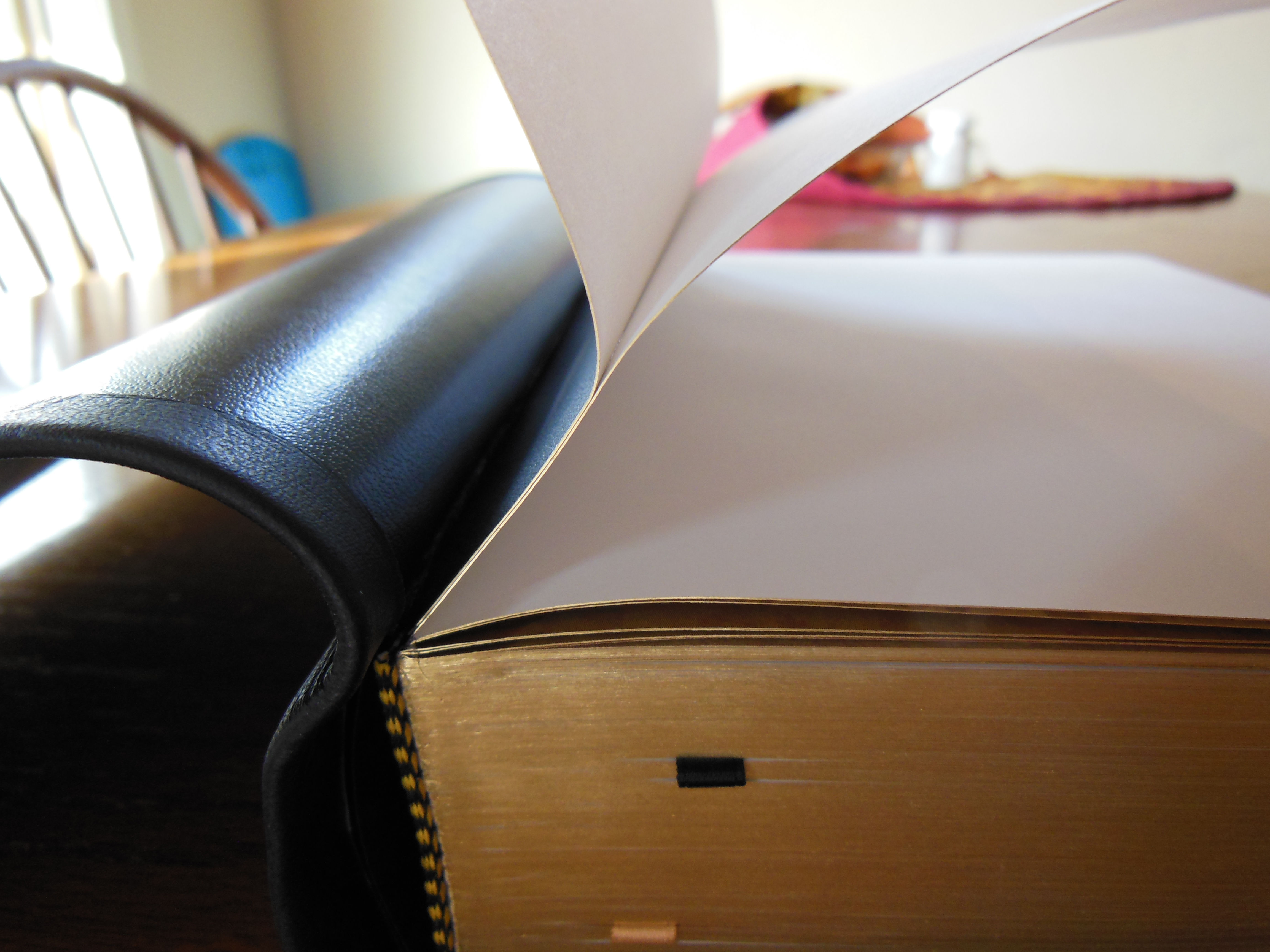 There is one very thin, and unintentional looking ribbon marker. It just seems out of place. Given their exceptional use of overcasting contrasted with this anemic ribbon, I’m at a loss. I’m kind of a stickler for ribbon markers. All Bibles should come with 3 ribbon markers that are wide enough to not bite into the page edges when opening the Bible with them. They should be thick enough to be durable. They should be thin enough to not leave grooves in the pages from when the Bible is closed on them. Finally they should not be folded haphazardly into the Bible from the factory.