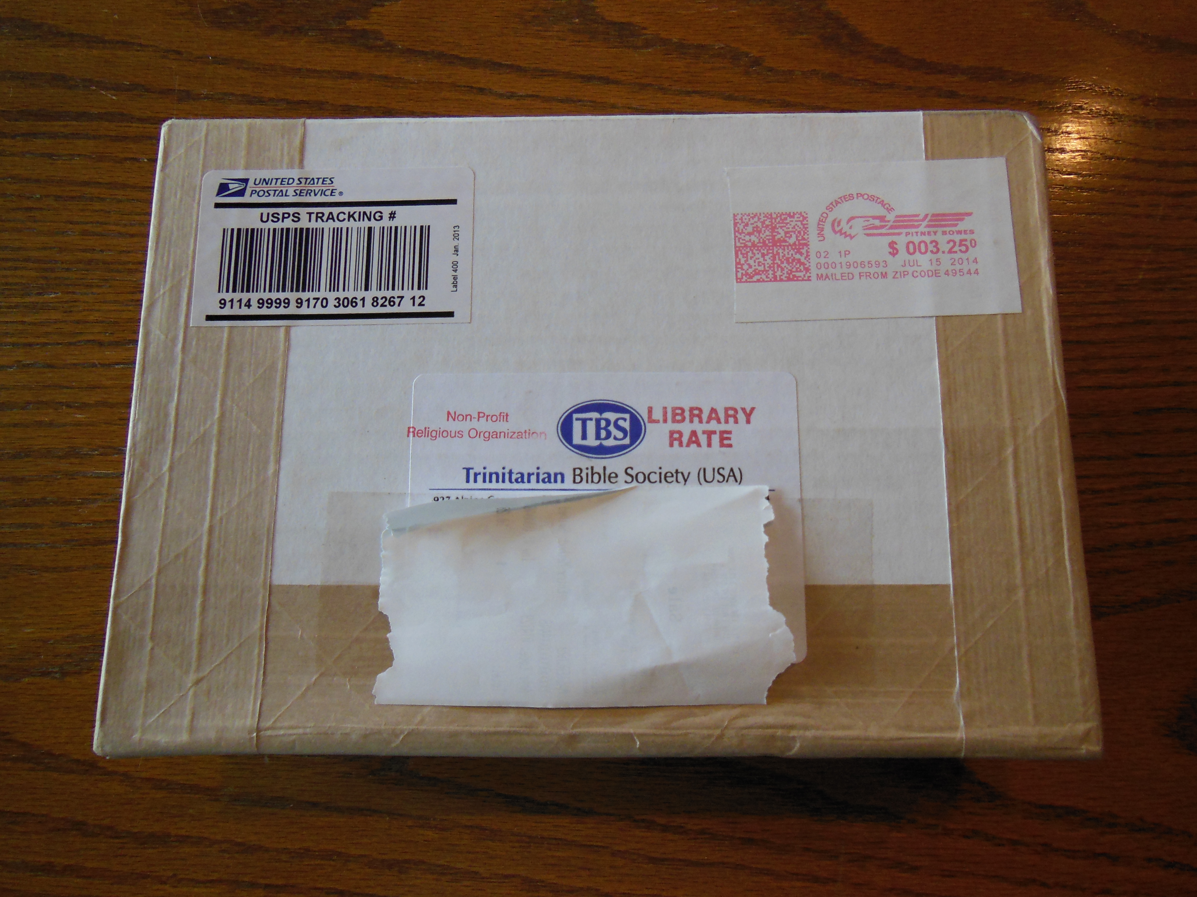 The folks over at Trinitarian Bible Society were kind enough to send me a copy of their Slimline Pocket New Testament for review. It has been a while since I’ve written a review of one of the Bibles they produce. I thought it would be a good time to take a look at a very affordable, and lightweight New Testament. This New Testament is shipped in minimal packaging. It was in a sleeve and wrapped with clear plastic. The pictures on TBS’ site look a bit browner than in reality.
